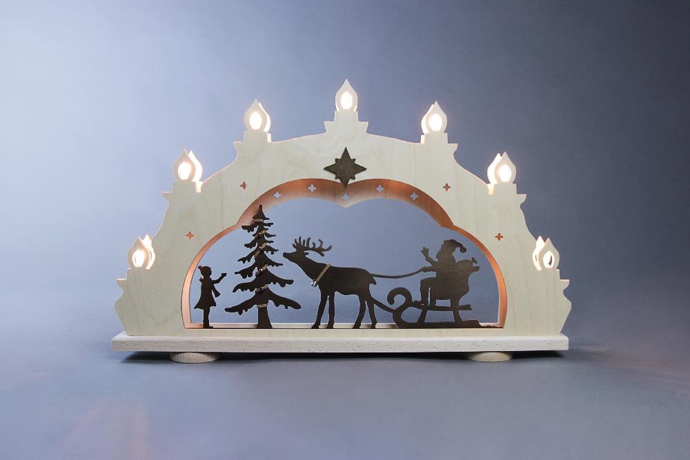 Ideal als stimmungsvolle Weihnachtsdekoration nutzbar. Der Lichterbogen funktioniert ganz einfach durch Anschluss an eine herkömmliche Steckdose. Die warmweiße LED-Beleuchtung aktiviert sich sofort und setzt das kunstvolle Holzschmuckstück wirkungsvoll in Szene. Perfekt geeignet für gemütliche Abende, Familienfeste oder als stilvolles Geschenk für Liebhaber traditioneller Handwerkskunst.