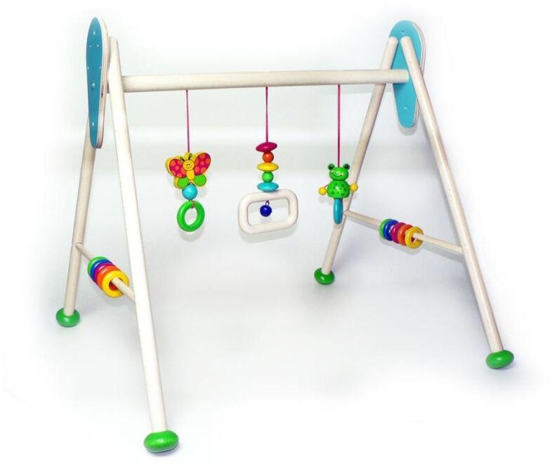 Erkunden Sie das niedliche Design des Baby- und Kleinkindspielzeug Frosch Toni. Mit bunten Holzteilen, Perlen und Ringen wird das Spielgerät zum Blickfang in jedem Kinderzimmer. An jeder Ecke gibt es etwas zu entdecken: Vom rasselnden Glöckchen bis zum klapprigen Ring. Der stabile Holzrahmen bietet sicheren Halt bei den ersten Gehversuchen. Die fröhliche Farbgestaltung wirkt belebend und liebevoll zugleich. Das Buchenholz stammt aus nachhaltiger Forstwirtschaft und die Farben sind lösungsmittelfrei. Qualität und Sicherheit stehen im Vordergrund, wodurch dieses Spielzeug langlebig ist.