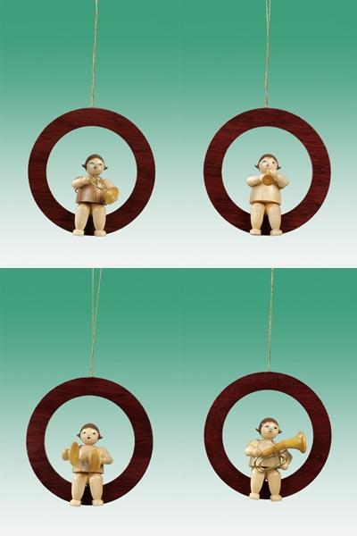 • Baumbehang Engel im Ring mit Instrument und Krone (3-teilig)