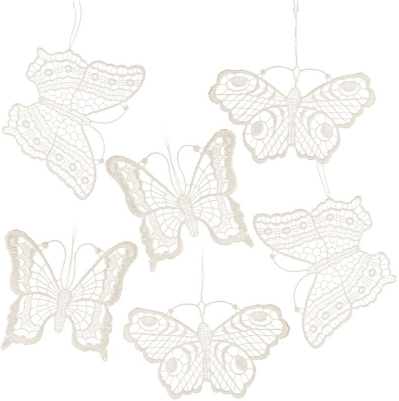 Vorteile / Details – Baumschmuck Zarte Schmetterlinge aus Plauener Spitze im Set mit drei Designs BxHxT 1x6,5x0,1cm – Größe ca. 6,5 cm