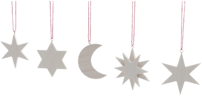 • Design: Sternform mit zwei integrierten handgestochenen Spanbäumen