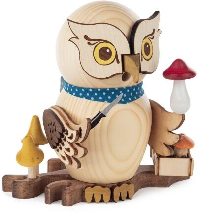 Das Erzgebirge lebt von spezialisierten Könnern, deren Programme sich in Schwerpunkten unterscheiden. So stehen bei einzelnen Manufakturen feine Spandekore, bei anderen charakterstarke Figuren oder akkurate Drechselarbeiten im Mittelpunkt. Die Eule wird jeweils entsprechend interpretiert: mal schlank und reduziert, mal detailfreudig und liebenswert-verspielt. Diese Vielfalt macht die Kategorie so reizvoll – ein Motiv, viele Handschriften, ein gemeinsamer Qualitätsanspruch.