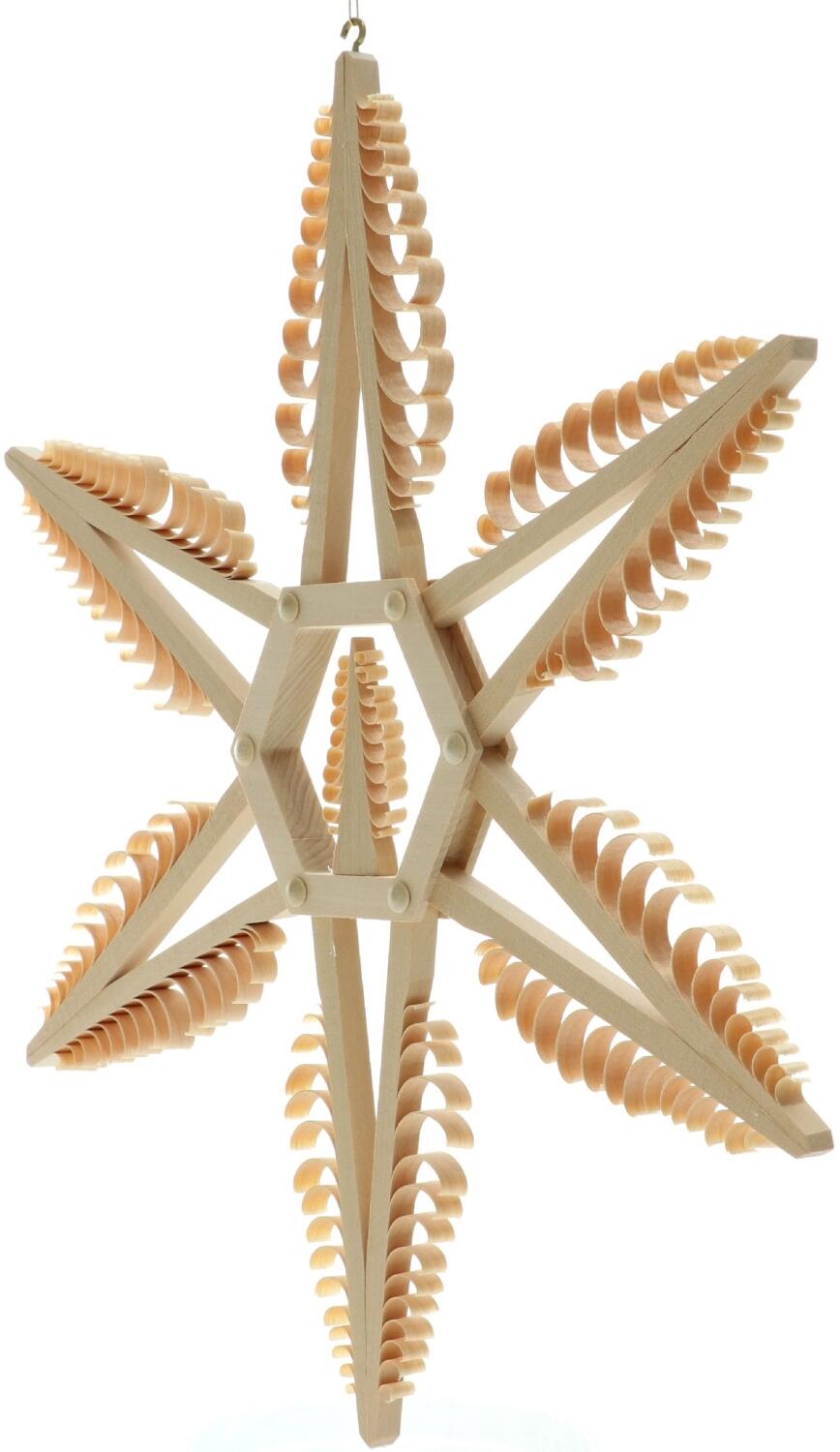 Der Name steht für echte Spansterne aus dem Erzgebirge. Charakteristisch sind fein gestochenen Späne, klare Sterngeometrien und eine ruhige, natürliche Anmutung. Die Fensterbilder überzeugen durch ihre luftige Bauweise und die Sorgfalt in der Ausarbeitung – vom gleichmäßigen Stechen der Späne bis zur harmonischen Form.