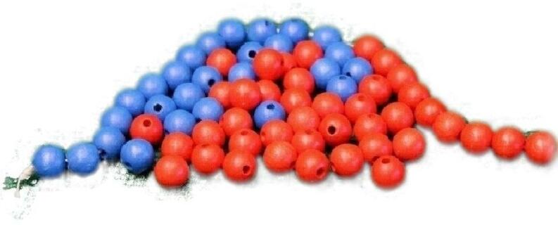 Holzspielzeug 100 blaue Holzperlen 100 rote Holzperlen mit Loch zum spielen oder auffädeln farbig aus Buchenholz ø 13mm. Lieferumfang sind 100 rote Perlen ø 1,3cm NEU