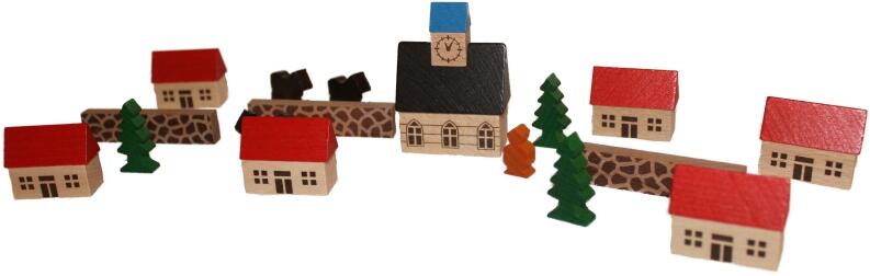 Lieferumfang – Spielzeugdorf mit Kirche im Beutel