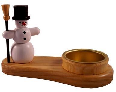 1 handbemalter Holz-Schneemann-Kerzenhalter mit integriertem Metalleinsatz für Teelichter