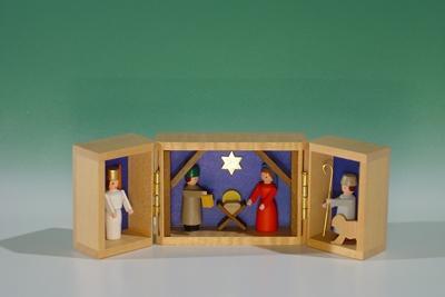 Lieferumfang Miniatur Krippenschrein im Klappkästchen – ca. 4,5 cm