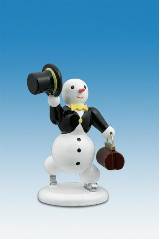 Der niedliche Schneemann verzaubert nicht nur durch seine detailverliebte Ausführung. Die Kombination aus leuchtenden Farben und charmanten Accessoires wie der schwarzen Tasche und dem markanten Zylinder machen die Figur zu einem echten Hingucker. Ob als winterliche Tischdekoration oder als Blickfang im Bücherregal - dieser Miniaturfreund bringt Freude in jedes Heim.