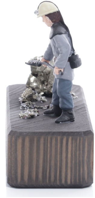 Die Figur sind aus hochwertigem Zinn gegossen und aufpoliert. So erhält der Bergmann diese glänzende Oberfläche. Mit einem sehr weichen filigranen Pinsel wurde nach dem Gießen der Bergmann von Hand bemalt. Durch die farbliche Gestaltung kann man bei der Zinnfigur noch besser die prachtvolle Uniform erkennen. Das Highlight des Bergwerks ist das echte Mineralgestein.