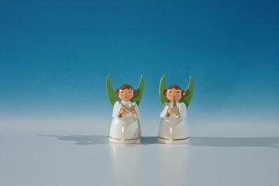 Lassen himmlische Klänge im Kleinformat erklingen. Miniatur Musikengelpaar mit Trompete und Gesang vereint Harmonie und Farbe in filigraner Handarbeit.