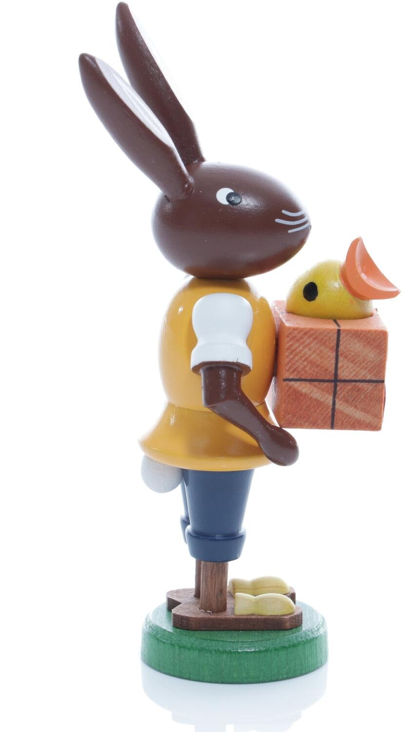 Dieser kleine Osterhase bringt nostalgischen Charme in jedes Zimmer. Die detailreich bemalten Augen und der freundliche Ausdruck lassen Kinderaugen leuchten und Erwachsenenherzen höher schlagen. Das leuchtend grüne Osterei in seinen Pfoten ist ein besonderer Blickfang und harmoniert wunderbar mit dem warmen Braun des Holzes. In nachhaltiger Handarbeit gefertigt, überzeugt dieser Hase durch seine hochwertige Verarbeitung. Ob auf dem Esstisch, im Wohnzimmerregal oder als Geschenk – er versprüht österliche Atmosphäre überall dort, wo er steht. Ein echtes Schmuckstück traditioneller erzgebirgischer Handwerkskunst, das jede Sammlung bereichert. Entdecken Sie solche meisterhaft gefertigten Produkte in der Kategorie Osterhasen.
