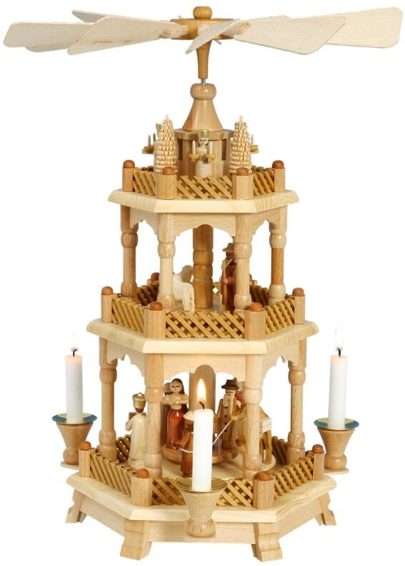 Pyramiden für Kerzen - Natürliche Weihnachtspyramide Christi Geburt mit Engeln – Breite x Höhe x Tiefe ca. 30 x 42 x 30 cm