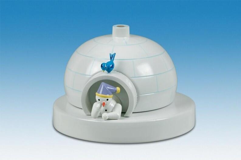 Das liebevoll gefertigte Iglu zeigt einen charmanten Schneemann, der neugierig aus seinem winterlichen Zuhause schaut. In aufwändiger Handarbeit wurde jede einzelne Linie und jede Farbe aufgetragen. Das warme Licht einer entzündeten Räucherkerze sorgt dafür, dass ein zarter Rauch aus dem Kamin des Iglus steigt.