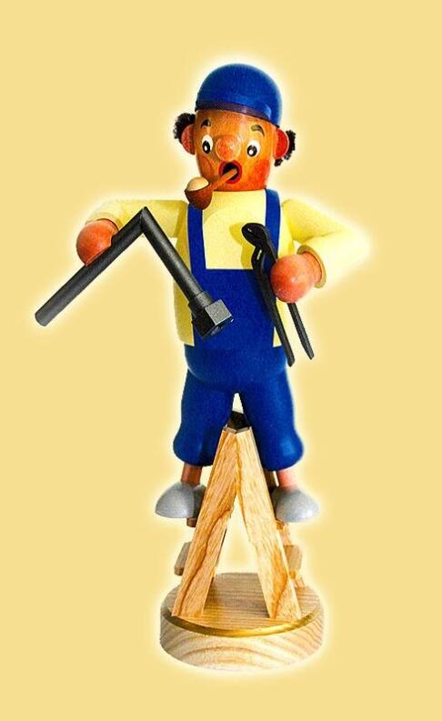 Zauberhafter, handgefertigter Räuchermann Installateur – Höhe ca. 28 cm