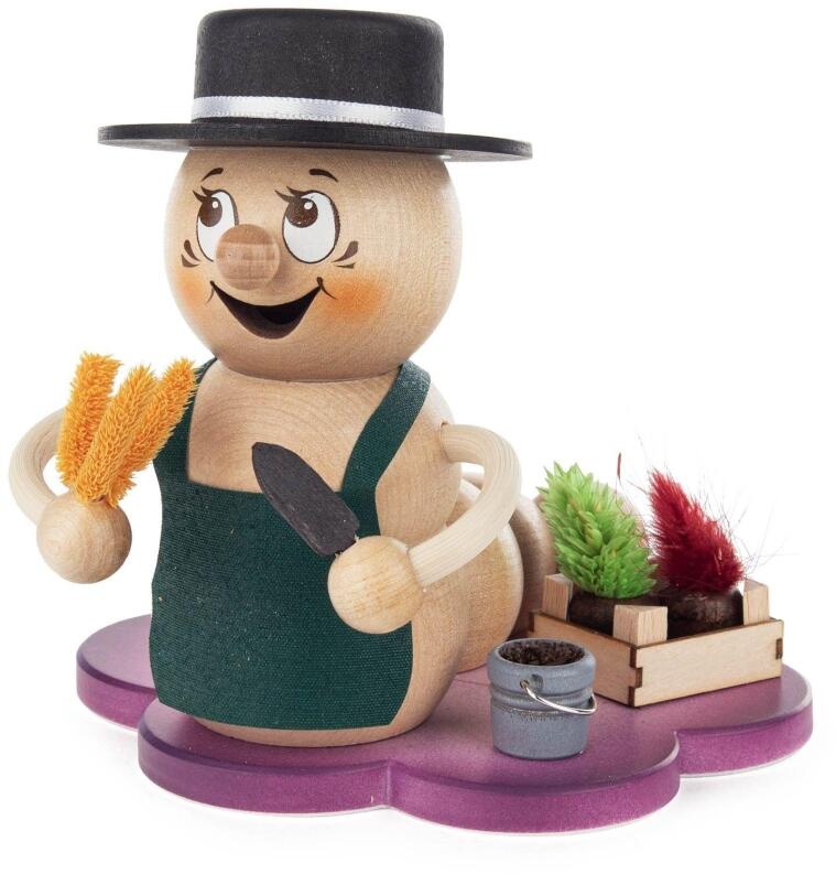 Zauberhafte, farbenfrohe Räucherfigur – Rudi Gärtner mit Blumen – Höhe ca. 13 cm