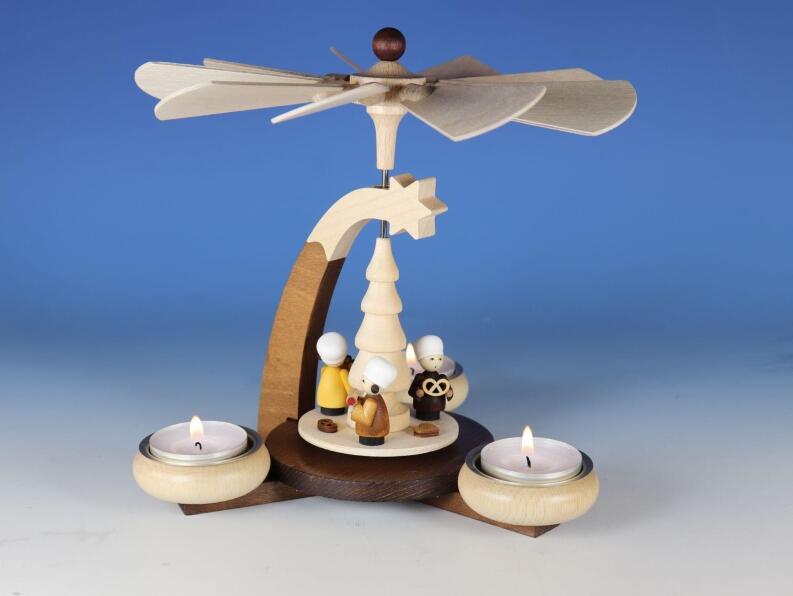 Teelichtpyramide – detailreiche Weihnachtsbäckerei mit filigranen Bäckerfiguren, braun/natur – BxH =