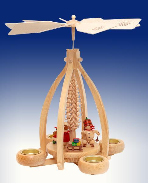 Diese Pyramide eignet sich hervorragend als stimmungsvolle Weihnachtsdekoration. Die Hitze der Teelichter bewegt das Flügelrad, welches die Pyramide in sanfte Drehung versetzt. Das flackernde Kerzenlicht zaubert eine behagliche Atmosphäre in jeden Raum und lädt zur Besinnung und zum Verweilen ein. Ideal auch als Geschenk für Liebhaber traditioneller Handwerkskunst oder als Highlight Ihrer eigenen Sammlung.