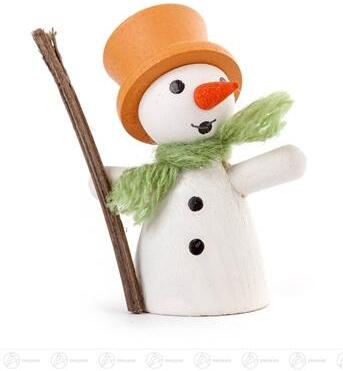 Lieferumfang "Weihnachtliche Miniatur Schneemann mit orangenem Zylinder Breite x Höhe x Tiefe 3,5 cmx5 cmx1,5 cm" – Höhe ca. 5 cm