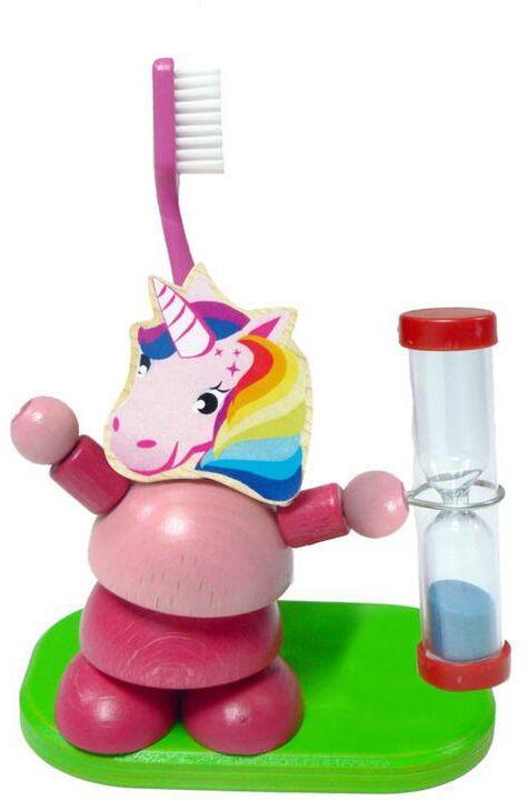 Mögliche Spielanleitung / Verwendung – Holzdekoration Zahnputzuhr Einhorn BxLxH 11x7x10,5 cm