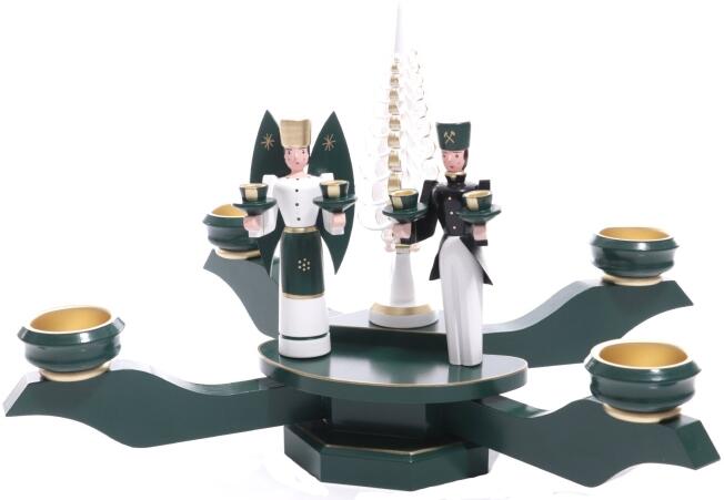 Adventsleuchter – detailreich gestalteter Tischleuchter mit Engel, Bergmann und filigranem Spanbaum, grün/weiß-gold – BxHxT = 38 x 25 x 22 cm 138,82 € inkl. 19% MwSt.